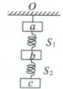 【例】(多选)如下图所示,物块 $ a $、$ b $ 和 $ c $ 的质量相同,$ a $ 和 $ b $、$ b $ 和 $ c $ 之间用完全相同的轻弹簧 $ S_1 $ 和 $ S_2 $ 相连,通过系在 $ a $ 上的细线悬于固定点 $ O $;整个系统处于静止状态;现将细绳剪断,将物块 $ a $ 的加速度记为 $ a_1 $,$ S_1 $ 和 $ S_2 $ 相对原长的伸长分别为 $ \Delta l_1 $ 和 $ \Delta l_2 $,重力加速度大小为 $ g $,在剪断瞬间 ( )