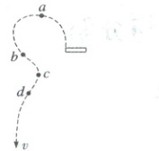 4. 如图所示是一位跳水队员在空中完成动作时头部的运动轨迹示意图,最后运动员以速度 $ v $ 沿竖直方向入水。则在轨迹的 $ a $、$ b $、$ c $、$ d $ 四个位置中,头部的速度沿竖直方向的是( )