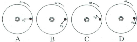 2. 某电视台举办了一期群众娱乐节目,其中有一个环节是让群众演员站在一个旋转较快的大平台边缘上,向大平台圆心处的球筐内投篮球,如果群众演员相对平台静止,则下面各俯视图中的篮球可能被投入球筐的是(图中箭头指向表示投篮方向)( )