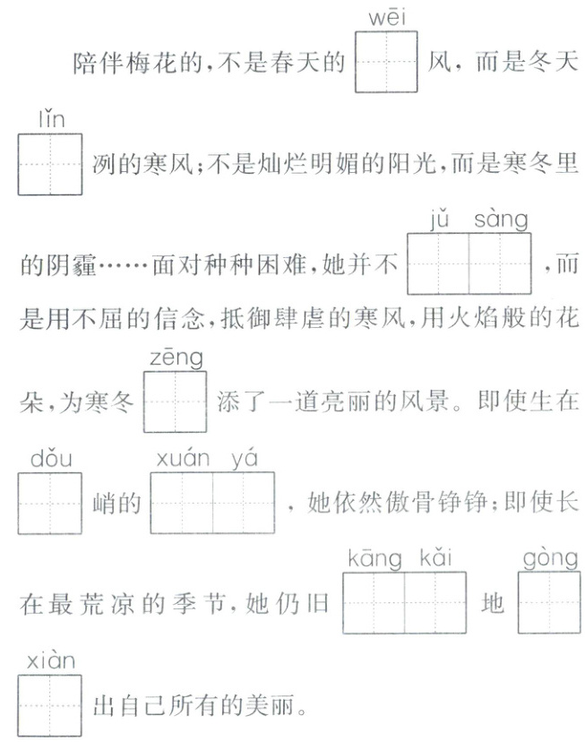一 根据语境,看拼音写字词。(6分)