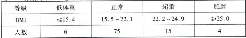 12. 某地区七年级共有2000名男生. 为了解这些男生的体重指数(BMI)分布情况,从中随机抽取了100名男生,测得他们的BMI数据(单位:$kg/m^{2}$),并根据七年级男生体质健康标准整理如下: