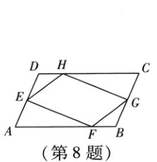 8. 在如图所示的$□ ABCD$中,$E$,$G$分别为边$AD$,$BC$的中点,点$F$,$H$分别在边$AB$,$CD$上移动(不与端点重合),且满足$AF = CH$,则下列为定值的是(