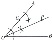 如图,已知$\angle AOB = 50^{\circ}$,点C在边OA上.请用尺规作图法,在$\angle AOB$的内部作一点P,使得$\angle AOP = 25^{\circ}$,且$CP // OB$.(保留作图痕迹,不写作法)