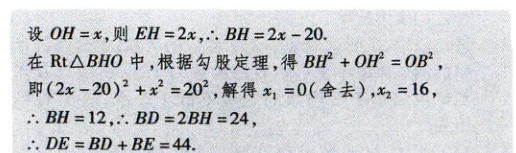 ∴OP=$\sqrt{AP^{2}+AO^{2}}=\sqrt{10^{2}+20^{2}}=10\sqrt{5}$,AF=2AO=40。