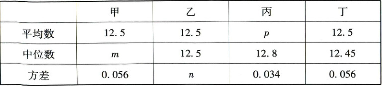 23. 校田径队教练选出甲、乙、丙、丁四名运动员参加100米比赛. 对这四名运动员最近10次100米跑测试成绩(单位:s)的数据进行整理、描述和分析. 下面给出了部分信息.