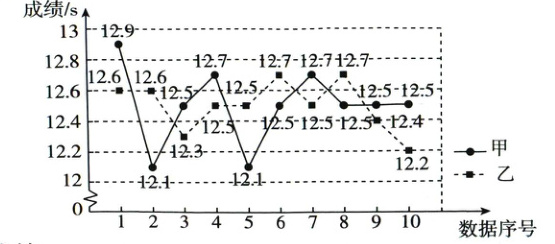 a. 甲、乙两名运动员10次测试成绩的折线图: