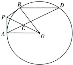 24. 如图,过点$P$作$\odot O$的两条切线,切点分别为$A,B$,连接$OA,OB,OP$,取$OP$的中点$C$,连接$AC$并延长,交$\odot O$于点$D$,连接$BD$.