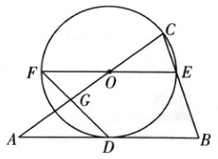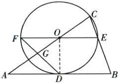 ∴∠DOE = 2∠F = 90°,即EF⊥OD,