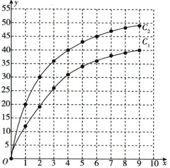 (1)观察曲线$C_{1}$,当整数$x$的值为时,$y$的值首次超过35.