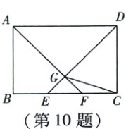 10. 如图,在矩形 $ABCD$ 中,$E$,$F$ 是 $BC$ 边上的三等分点,连接 $DE$,$AF$ 相交于点 $G$,连接 $CG$. 若 $AB = 8$,$BC = 12$,则 $\tan \angle GCF$ 的值是(