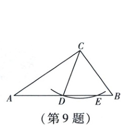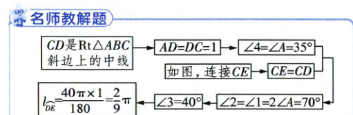 9. 如图,在 $Rt \triangle ABC$ 中,$\angle A = 35^{\circ}$,$CD$ 是斜边 $AB$ 上的中线,以点 $C$ 为圆心,$CD$ 长为半径作弧,与 $AB$ 的另一个交点为点 $E$. 若 $AB = 2$,则 $\overset{\frown}{DE}$ 的长为(