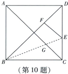 10. 如图,折叠正方形 $ ABCD $ 的一边 $ BC $,使点 $ C $ 落在 $ BD $ 上的点 $ F $ 处,折痕 $ BE $ 交 $ AC $ 于点 $ G $. 若 $ DE = 2\sqrt{2} $,则 $ CG $ 的长是