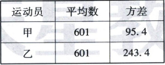 13. 甲、乙两名运动员进行跳远测试,每人测试10次,他们各自测试成绩(单位:$cm$)的平均数和方差如下表: