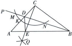 10. 如图,在$\triangle ABC$中,$AB = 16$,$BC = 12$,$CA = 10$,$\angle ABC$的平分线$BP$与$AC$相交于点$D$.在线段$AD$上取一点$K$,以点$C$为圆心,$CK$长为半径作弧,与射线$BP$相交于点$M$和点$N$,再分别以点$M$和点$N$为圆心,大于$\frac{1}{2}MN$的长为半径作弧,两弧相交于点$Q$,作射线$CQ$,与$AB$相交于点$E$,连接$DE$,则$\triangle DAE$的周长为(