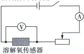 ①溶解氧传感器两端的电压$U'=U-U_{R}$减小,即电压表的示数变小,B错误