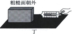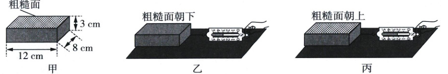 (2)对比乙、丙两次实验,可看出两次实验时,木块对木板的压力相同且接触面大小一定,但接触面的粗糙程度不同,且粗糙面朝下时,弹簧测力计示数更大,即滑动摩擦力更大。