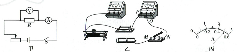 (2)正确连接电路,闭合开关后,发现电流表、电压表均无示数。将另一电压表的两端依次连接图乙中的M与N、N与O、O与P,分别显示0、3.0 V、0,由此判断电路故障为