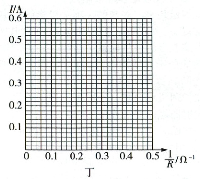 分析数据,小华发现保持电压不变时,通过导体的电流随着电阻的增大而减小,猜想电流与电阻成反比。为了验证他的猜想。请在图丁坐标纸上描点并作出“$ I - \frac{1}{R} $”图像。