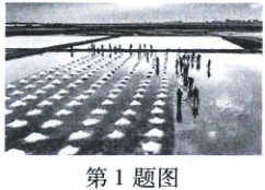 1. 如图为山西省运城市著名的七彩盐湖,运城人民在千年前就将盐湖水引入盐田,利用日光和风力使湖水减少,盐便结晶出来。此过程中,湖水发生的物态变化是 ( )
