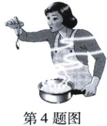 4. 如图,从热汤中取出的金属勺子,由烫手到不烫手的过程,其内能 (