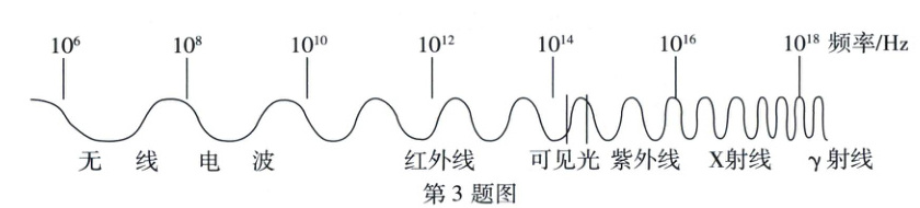 3. 某广播电台发射频率为$1.027×10^{8}\ Hz$的电磁波,根据图示信息,该电磁波属于 (