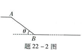(4)如题22-2图巡检线路,当机器人到达A点时,蓄电池储能为$ 0.95E_0 $。随后机器人先下坡巡检(电机切换为发电机),后水平巡检(电机切换为电动机),巡检全程速度大小保持不变。AB段重力势能减少量为$ 1 × 10^5 $J。充电过程中,重力势能每减少1J,转化为电能并储存在蓄电池中的能量为0.45J。水平阶段机器人所受阻力大小是重力的0.15,则水平阶段匀速巡检的最大路程为m。($ g = 10 \mathrm{N/kg} $)