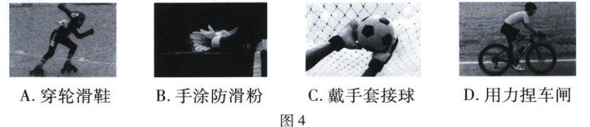 8. 新趋势 生活物理 在体育运动中,图4中的做法为了减小摩擦的是 (