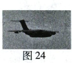 30. (7分)运-20是我国自主研制的重型运输机,如图24。飞机获得的升力$F$与其在平直跑道上滑行速度$v$的平方成正比,即$F=kv^2$,$k$为定值(未知)。飞机在平直跑道上从静止开始加速,当速度达到$v_1$时,飞机即将离地起飞,此时飞机所受升力与重力相等。升空后,飞机若以速度800 km/h沿水平直线匀速飞行0.5 h,其发动机在水平方向的牵引力大小为$3.6×10^5\ N$。