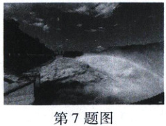 7. 如图为三峡大坝泄洪的画面。上游洪水从泄洪口喷出,江面上激起大量水雾,阳光白云下出现绚丽的彩虹。下列说法正确的是 (