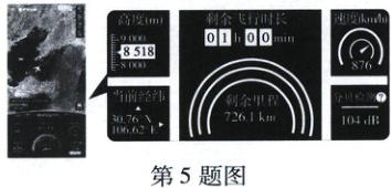 5. ★新情境 飞机飞行数据 小华乘飞机途中用手机在飞行模式下检测到如图所示数据。下列说法正确的是 (