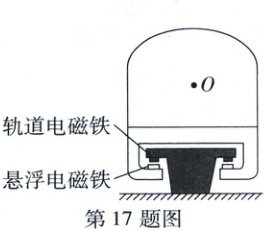 17. (2分)如图,磁悬浮列车悬浮在铁轨上不与轨道接触,请画出列车的重力(O点为重心)及左侧悬浮电磁铁所受轨道电磁铁作用力的示意图。