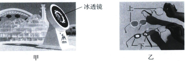 (选填“上”或“下”)方眼镜的透镜类型与冰透镜相同,为右