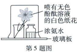 5. 新考法 与化学知识结合考查扩散现象 如图所示的实验中,浓氨水和无色酚酞溶液没有直接接触,但观察到纸花变红,这一现象表明 (