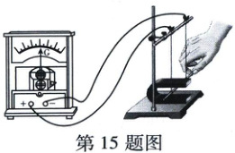 15. 如图所示,悬挂在蹄形磁体两极间的导体与灵敏电流计构成闭合回路。当导体静止不动时,电流计指针
