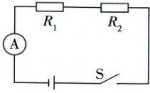 21. 如图所示电路,电源两端电压恒为3V,定值电阻R₁阻值为10Ω。闭合开关S,电流表示数为0.2A。