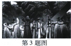3. 如图是“祖脉秦岭,诗意长安”主题文化活动的场景。活动中颂诗、乐器演奏、歌曲演唱等多种文艺创演,彰显了陕西文化特色。下列分析正确的是 (