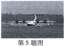 5. 如图是我国为满足森林灭火和水上救援等迫切需求而研制的大型水陆两栖飞机“鲲龙”AG600。工作时,它可在20 s内吸水12 t,并在4 s内倾泻完毕,能实现水源与火场之间多次往返。下列关于“鲲龙”的说法正确的是 (