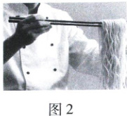 5. ★新趋势 生活物理 如图2所示,为了防烫、防滑和操作便利,重庆小面师傅使用的捞面筷子长度达$42\ cm$。下列描述正确的是 (