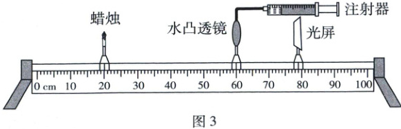 5. 图3为某同学用自制的水凸透镜进行实验探究的情景,此时光屏上呈现了烛焰清晰的像(像未画出),该像是倒立、