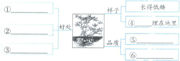 1.①味美 ②榨油 ③便宜 ④果实 ⑤默默奉献 ⑥朴实无华