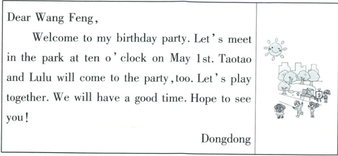 Dongdong's birthday is coming. He wants to invite his friends to his birthday party. Here is an invitation(邀请函).