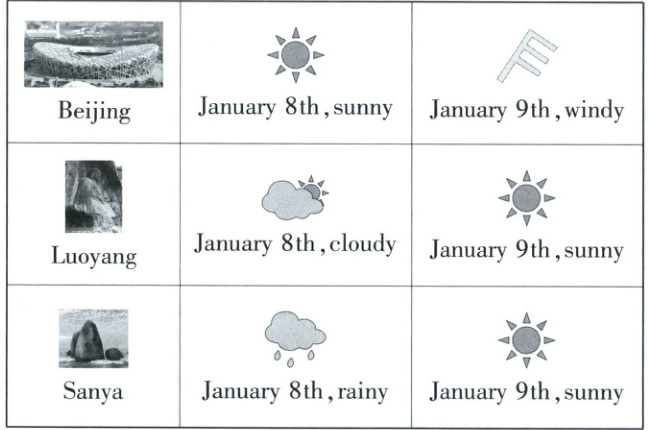 today in Beijing and it will be windy tomorrow. In Luoyang it's cloudy