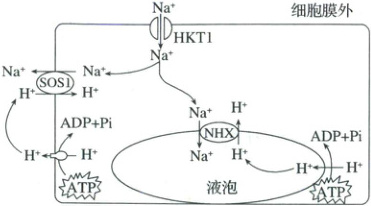 1. (2025·四川达州模拟)研究耐盐的作物可以有利于扩大粮食产量,图示是耐盐植物的机制,其中 SOS1、HKT1 和 NHX 代表转运蛋白。下列叙述正确的是(