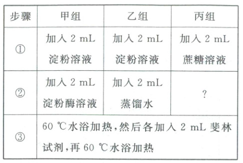)A.丙组步骤②应加入2mL蔗糖酶溶液