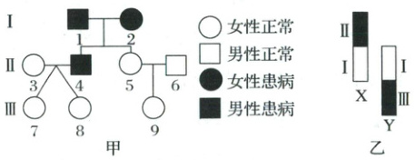 D.红绿色盲属伴X染色体隐性遗传病,致病基因位于图乙中Ⅱ区段