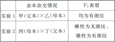 D.实验1子代有斑纹雄性个体与实验2子代无斑纹雌性个体杂交,后代有斑纹个体中纯合子比例为1/6
