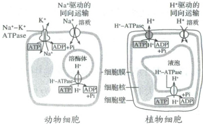 1.提示:动物的溶酶体膜和植物的液泡膜上H⁺-ATPase的作用是运输H⁺进入溶酶体和液泡内,使溶酶体和液泡保持低pH环境和在膜两侧产生质子电位差。