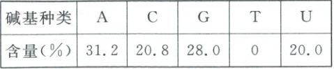 解析:该病毒的遗传物质的碱基中无T有U,说明该病毒的遗传物质是RNA,由题表可知,A与U的含量不相等,C与G的含量不相等,说明该病毒的遗传物质为单链RNA,以该单链RNA为模板合成的互补链中G+C的含量为20.8%+28.0%=48.8%,A错误;某些病毒的遗传物质能影响宿主细胞的DNA,从而引起基因突变,因此,该病毒的遗传物质可能会引起宿主DNA变异,B正确;病毒无细胞结构,病毒增殖需要的蛋白质由宿主细胞的核糖体合成,C错误;分离定律的适用条件是进行有性生殖的真核生物的细胞核遗传,病毒基因的遗传不符合分离定律,D错误。
