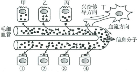 1. (2025·甘肃庆阳三模)下图是人体生命活动的调节模式图,其中甲~丁表示不同的分泌细胞,①~④表示不同的靶细胞。下列说法正确的是(