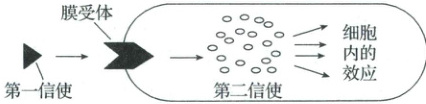 2. (2025·鹰潭二模)越来越多的证据表明,神经系统、内分泌系统与免疫系统之间存在着相互调节,通过信息分子构成一个复杂的网络。生物学上将细胞外与膜受体结合的信号分子称为第一信使,由其转换而来的细胞内信号则称为第二信使,如下图所示。下列有关叙述正确的是(